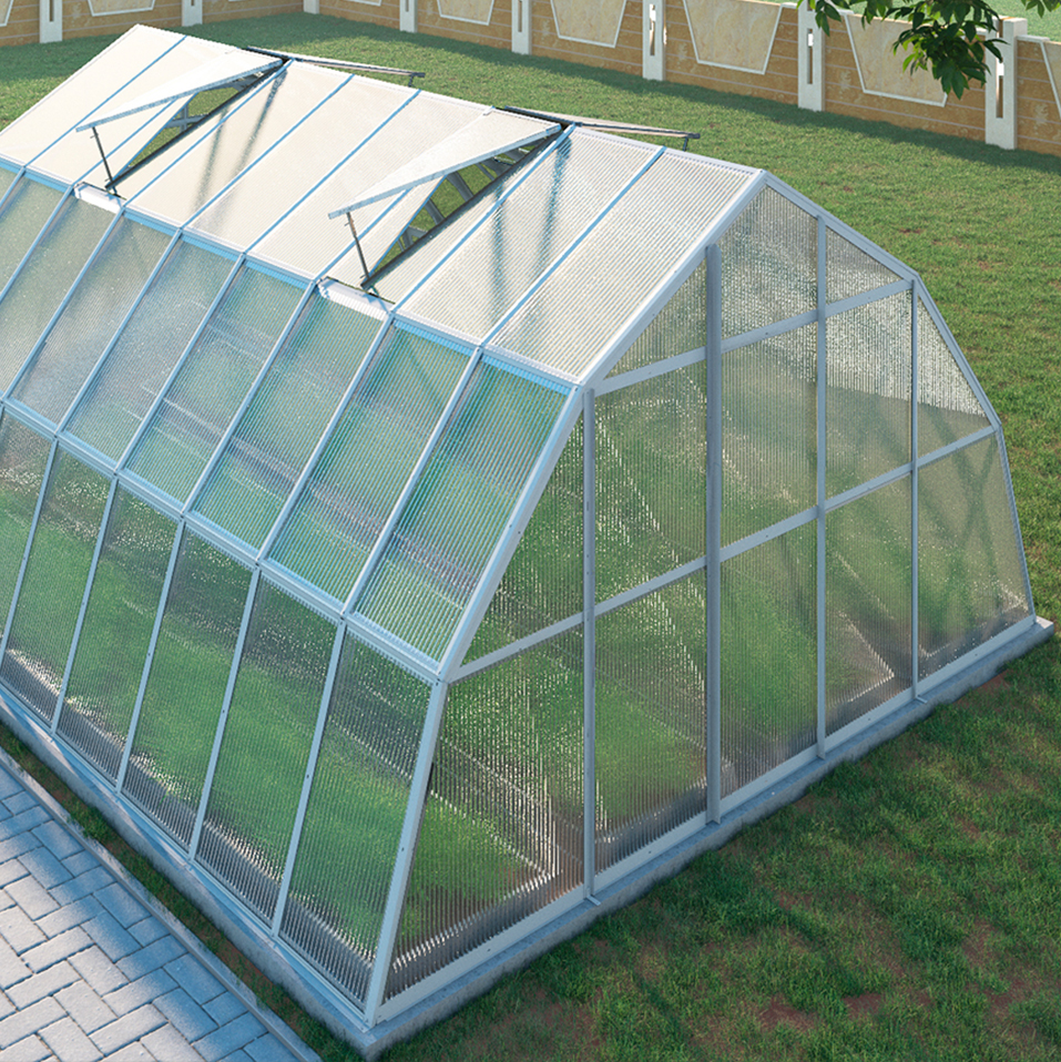 Длина теплицы варьируется от 4 метров, что позволяет подобрать идеальный размер, соответствующий вашим потребностям. Стеклянное покрытие гарантирует максимальное количество света и тепла, необходимых для успешного роста ваших растений.